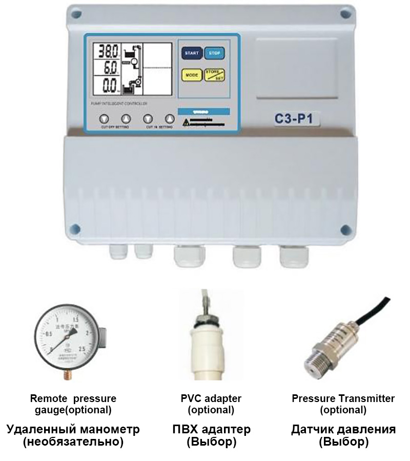 Высококачественный контроллер одиночного насоса повышения давления ZEN Machinery C-P1 оснащен следующими функциями управления: импульсный электродный датчик/поплавковый выключатель/электрический контакт; манометр/реле; дисплей – динамический ЖК-дисплей высокой четкости на английском языке; режим управления – ручной/автоматический, а также полные функции защиты как в ручном, так и в автоматическом режиме.
