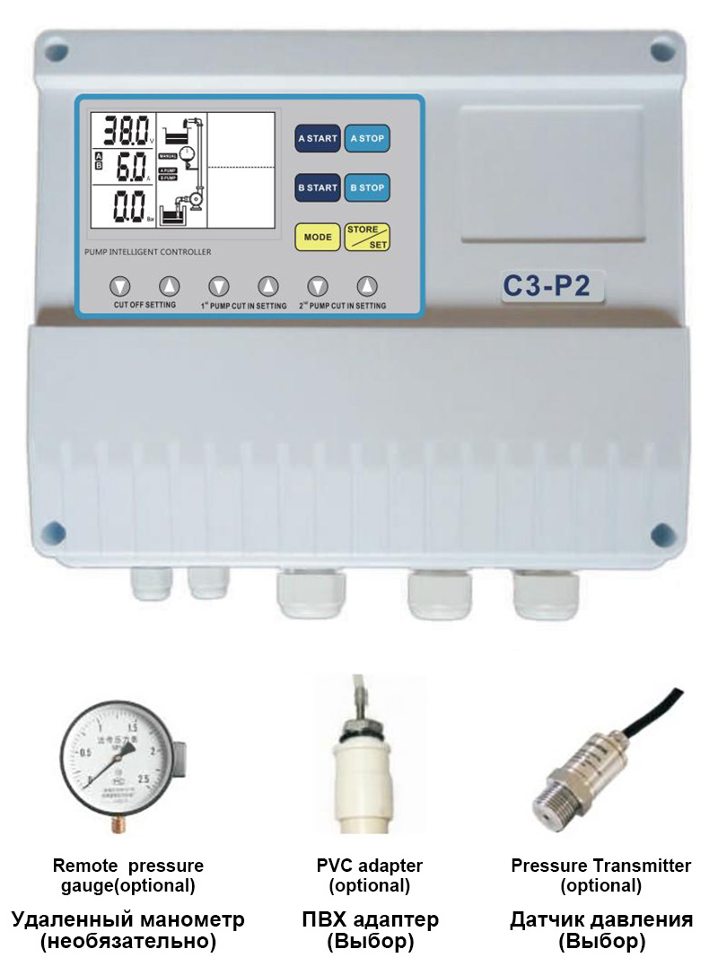 Высококачественный сдвоенный контроллер насоса повышения давления ZEN Machinery C-P2 оснащен следующими функциями управления: датчик импульсного электрода/поплавковый выключатель/электрический контакт; манометр/реле давления; дисплей — динамический ЖК-дисплей на английском языке; ручной/автоматический режим управления и полные функции защиты как в ручном, так и в автоматическом режиме.