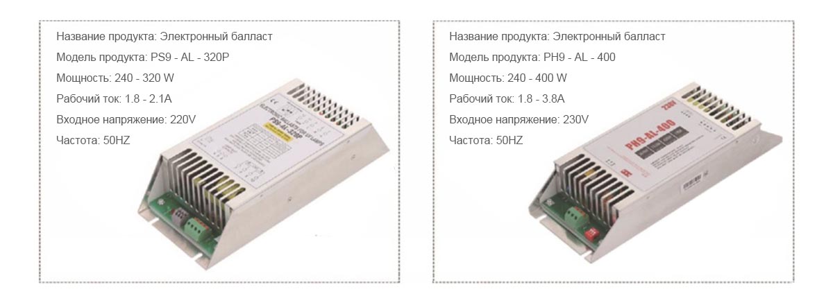 Выбранный балласт должен соответствовать потребностям применения. Предварительный электронный балласт очень полезен для продления срока службы лампы, особенно если требуется частая смена лампы. Частые переключения оказывают большое влияние на срок службы лампы.