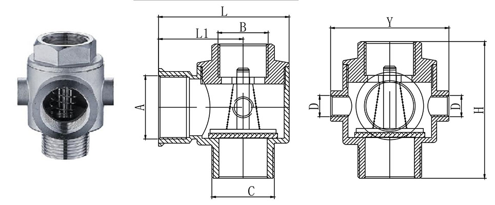| F-D4003 | Ф1" | Ф1" | М1" | Ф¼" | 90 | 66 | 65 | 38 | 630 |