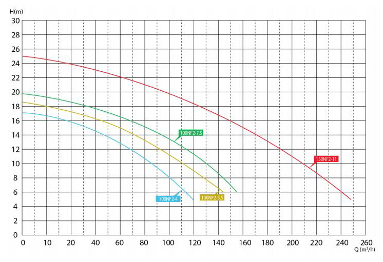 | Размер выхода (мм) | Тип насоса | Двухполюсный двигатель | (КВт) |