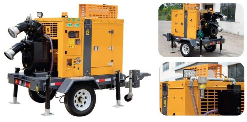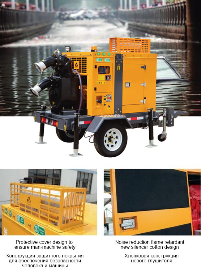 Высококачественный дизельный насос для прицепа фотоэлектрического типа ZEN Machinery подходит для дренажа полей без электричества; встроенная система вакуумного усилителя, нет необходимости заполнять корпус насоса водой. Он может начать быстро разряжаться после запуска; система для дорожного прицепа, скорость: 40 - 80 км/ч; встроенный топливный бак на шасси, может работать 8-10 часов.