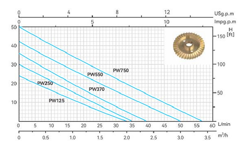 • Рабочее колесо: латунь