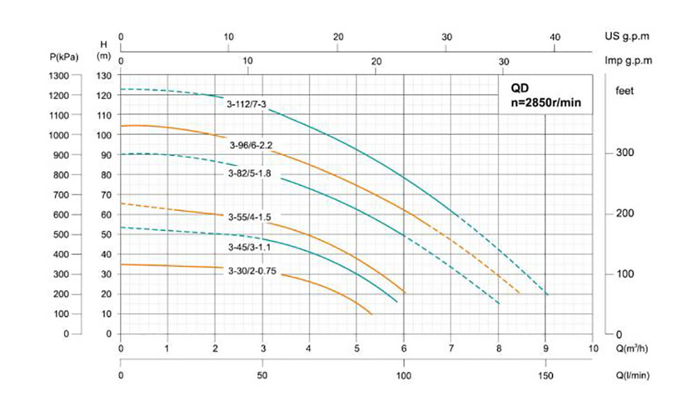 Насосы высокого давления Q(D) имеют многоступенчатую конструкцию и широко используются в таких областях, как сельскохозяйственное орошение, орошение, орошение в саду, водоснабжение скважин, водоснабжение водоёмов, аквакультура и т.д.