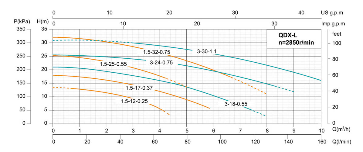 | 7 | QDX1.5-32-0.75F | 0.75 | 1 | 32 | 1.5 | 25 | 2900 | 8 | 3*1*8 |