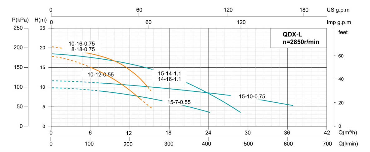 В качестве портативного электрического дренажного и ирригационного устройства погружной насос QDX-L с меньшим потреблением воды широко подходит для водяных боксов, сельскохозяйственных угодий, промышленных и горнодобывающих предприятий, строительных площадок, судов и семей и характеризуется меньшим объемом, легким весом, простотой в эксплуатации и т. д. Если насос оснащен выключателем нагрузки, можно добиться автоматического управления. Этот насос имеет однофазный конденсаторный асинхронный или трехфазный асинхронный двигатель, который установлен со встроенным термопредохранителем и может автоматически отключаться при перегреве или перегрузке, тем самым обеспечивая безопасную и надежную работу в самых тяжелых условиях.