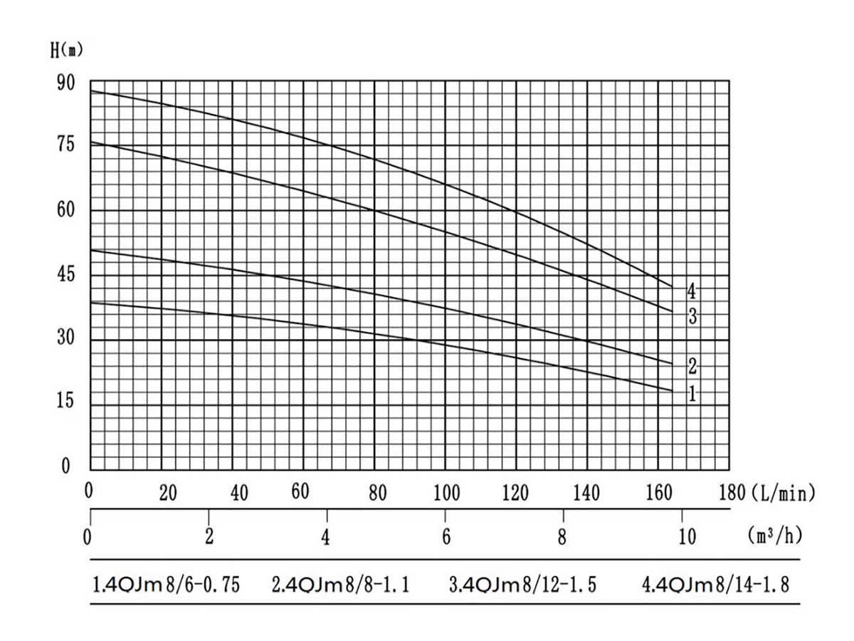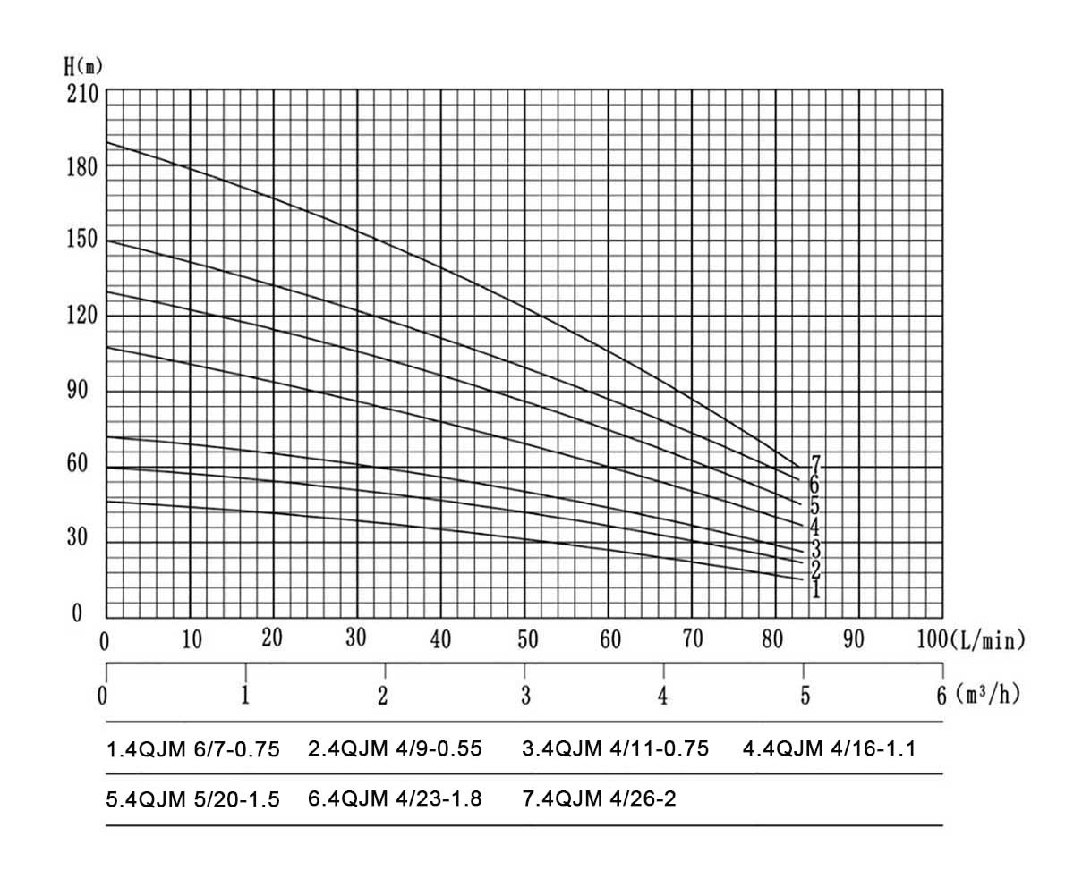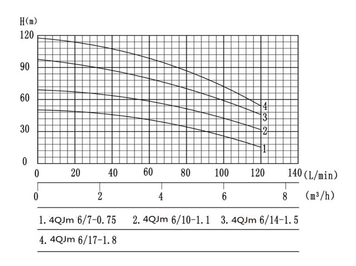 | 4QJM6/7-0,75 | 0.75 | 48 | 9 | 1,5 дюйма | Н(м) | 48 | 47 | 44 | 41 | 38 | 29 | 22 | 14 | 1,5 дюйма | |