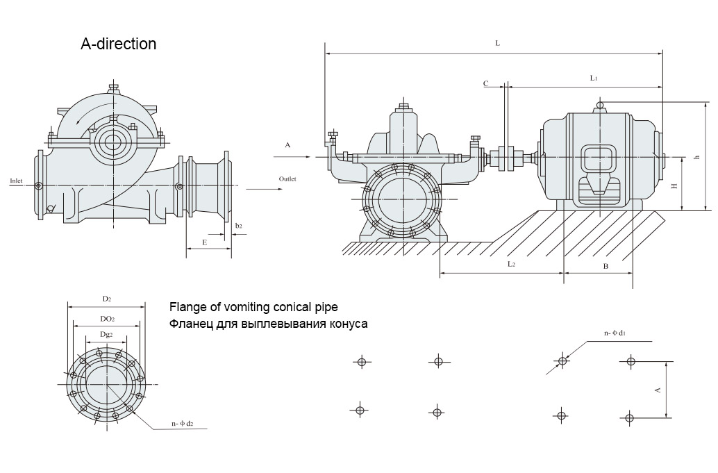 Все входы и выходы насоса расположены ниже оси, горизонтально и перпендикулярно оси, корпус насоса открывается посередине, поэтому нет необходимости демонтировать входную и исходную трубу и двигатель (или другой основной двигатель). С точки зрения сцепления насос движется по часовой стрелке. Насос может двигаться и против часовой стрелки, но порядку следует уделить особое внимание.