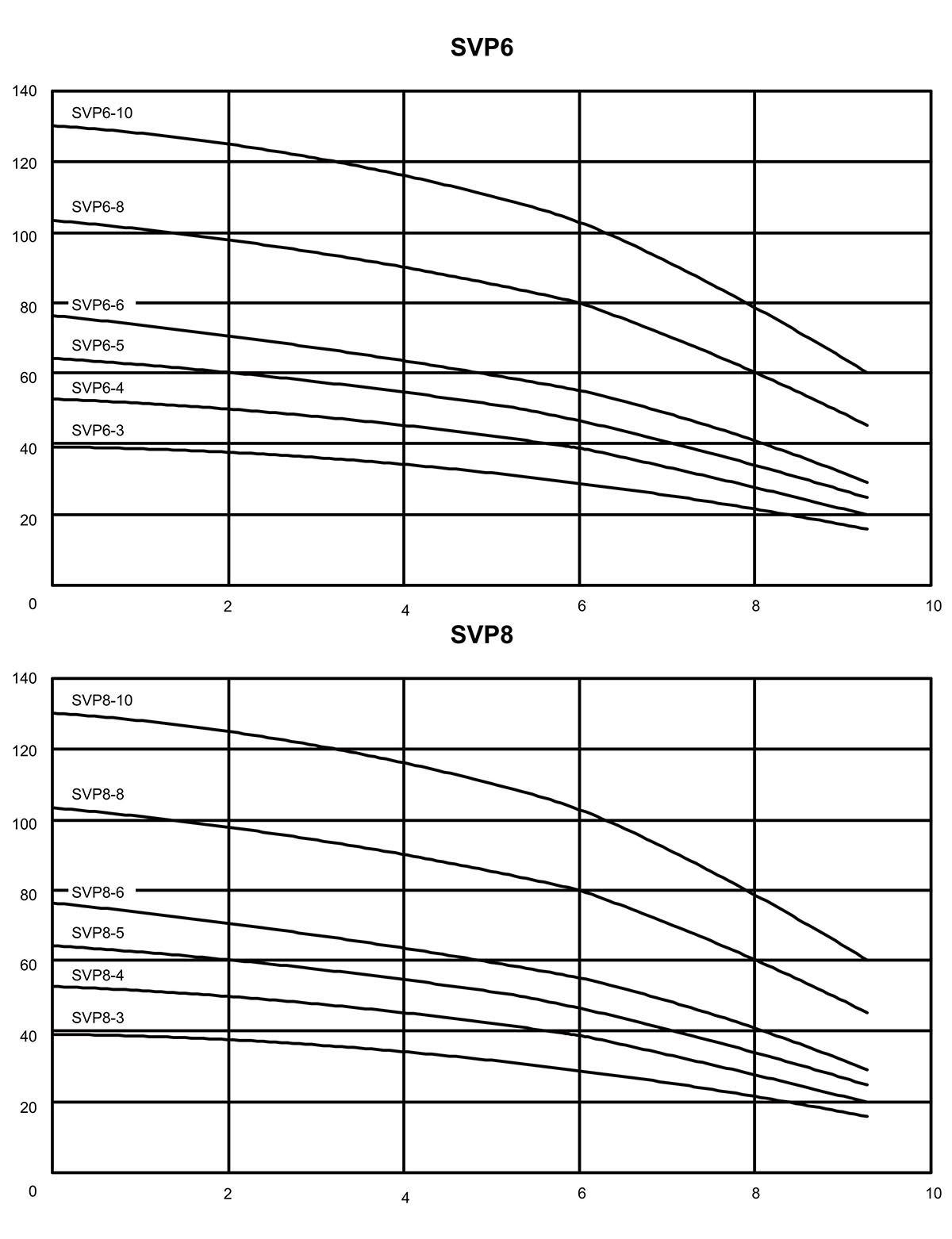 | СВП8-10 | 40×40 | 4 | 5.5 | 132 | - | - | - | - | 114 | 109 | 103 | 100 | 88 | 75 | 62 | - | - | - | - | - | - | ||||