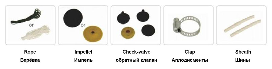 Верёвка, звук крыльчатки, обратный клапан.