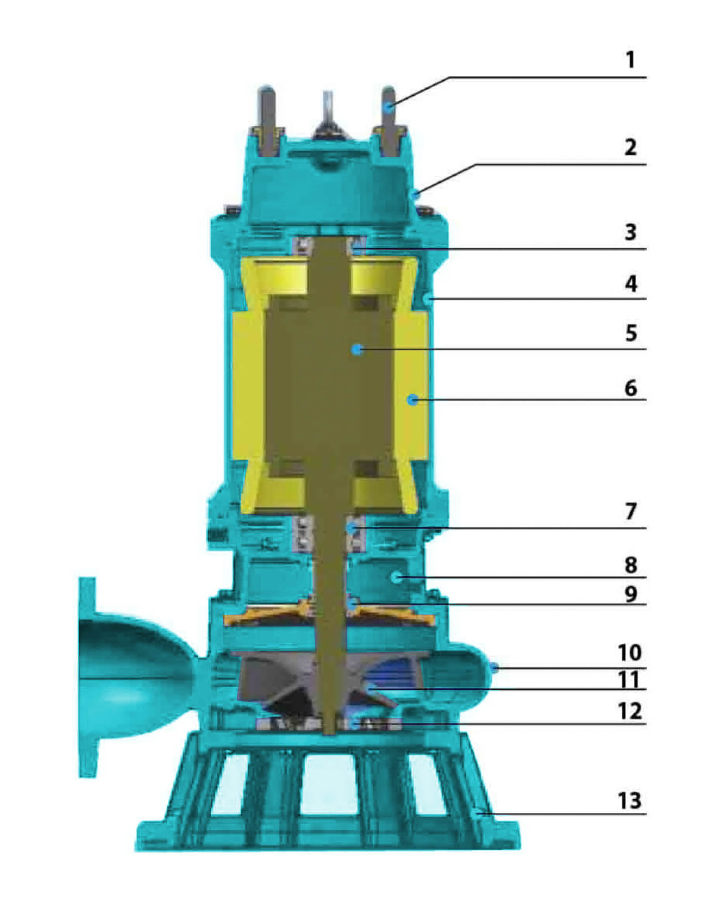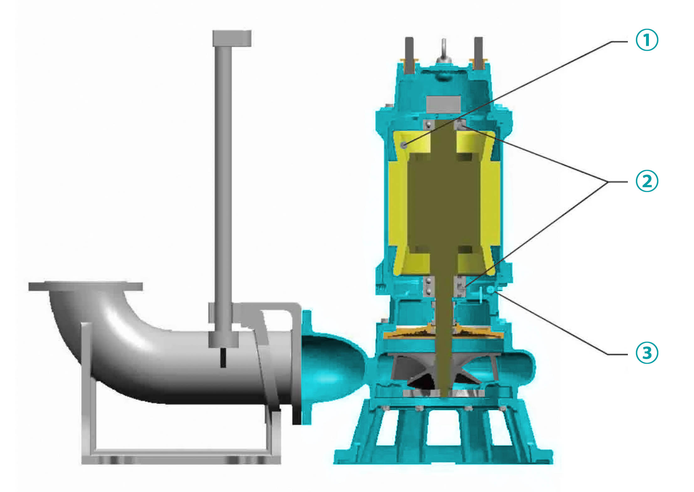 ① Обычные насосы для сточных вод требуют большой мощности при использовании большого расхода, а двигатель нагревается и перегорает.