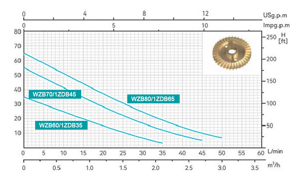 | WZB60 | 0.37 | 0.5 | Н(м) | 35 | 30 | 25 | 20 | 15 | 10.5 | 6.5 | 3 | |||||