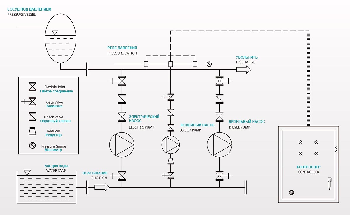 | 10 | Дизельный насос | Резервный источник питания |