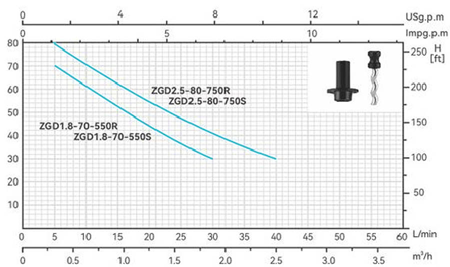 | ЗГД1.8-70-550Р | 0.55 | 0.75 | Н(м) | 75 | 50 | 30 | 20 | 10 | ||||||||