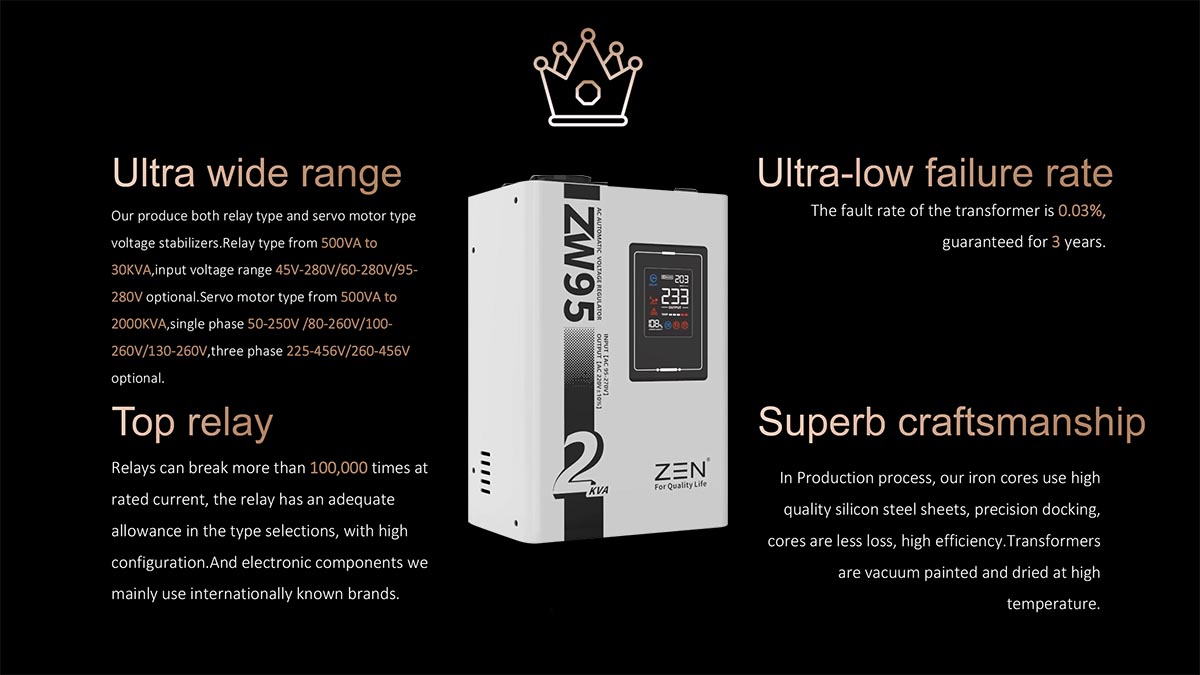 Высококачественные автоматические регуляторы напряжения переменного тока ZW95 мощностью от 1 кВА до 30 кВА от завода ZEN Machinery известны своим высоким качеством и надежностью, что делает их популярным выбором как для жилого, так и для промышленного применения. Особенности продуктаЭта модель представляет собой полностью автоматический небольшой стабилизатор напряжения 220 В, предназначенный для портативных цифровых светодиодных дисплеев. Он имеет небольшой размер, легкий вес, быструю регулировку напряжения, отсутствие искажений формы сигнала и так далее.